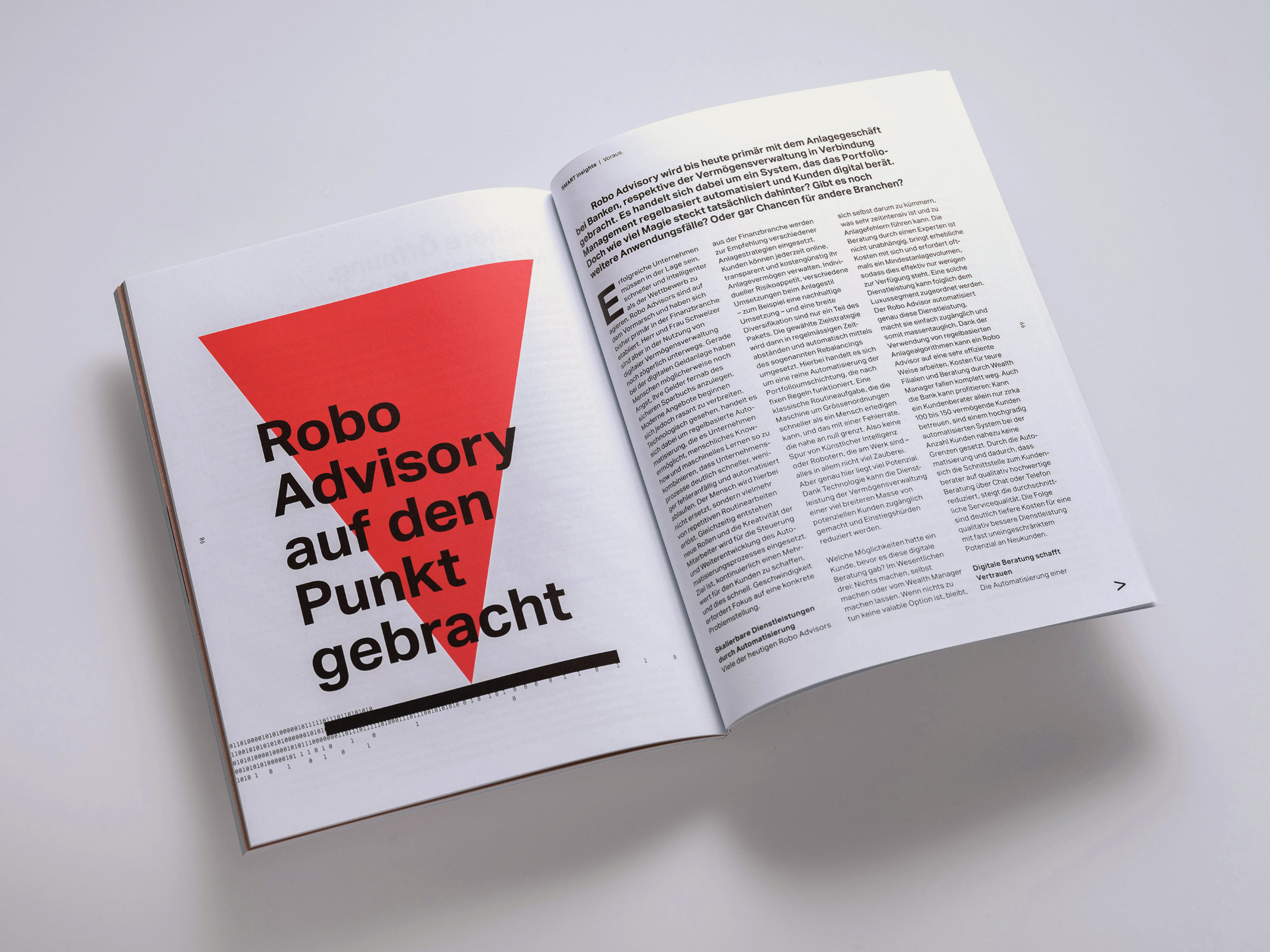 Für das Kundenmagazin «SMART insights» übernahmen wir die Rolle des kreativen Hubs: Gemeinsam mit Ergon als Redaktion entwickelten wir Designästhetik und Bildsprache von Grund auf neu und schrieben beides über jede Ausgabe hinaus konsequent weiter. Das Magazin wurde zum wirksamen Instrument der Neukundengewinnung.